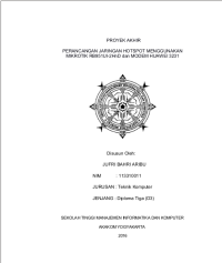 ABSTRAKrnPERANCANGAN JARINGAN HOTSPOT MENGGUNAKANrnMIKROTIK RB951UI-2HnD dan MODEM HUAWEI 3231rnKomunikasi tanpa kabel/nirkabel (wireless) telah menjadirnkebutuhan dasar atau gaya hidup baru masyarakat informasi. LANrnnirkabel yang lebih dikenal dengan jaringan Wi-Fi menjadirnteknologirnalternatifrndiimplementasikanrnjaringanrnWi-Firndirnlebihrndanrnrelatifrnlingkunganrnfleksibelrnlebihrnkerja.rnkarenarnmudahrnInstalasirntidakrnuntukrnperangkatrnmembutuhkanrnpenghubung kabel antar komputer. Access point merupakanrnperangkat yang biasa digunakan dalam jaringan wireless (Hotspotrnarea) dimana user atau pengguna terhubung ke internetrnmenggunakan media udara melalui perangkat access point. Selainrnitu, dengan jaringan berbasis wireless ini membuat masyarakatrnlebih mudah untuk mengakses internet dimanapun berada.rnImplementasi pemasangan jaringan ini terdiri dari pemasanganrnkonektor RJ- 45 pada kabel UTP, konfigurasi Access Point,rnkonfigurasi HotSpot Server MikroTik,rnKata Kunci : Wireless, MikroTik, HotSpot dan Access Point.rn