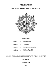 ABSTRAKrnROS rental adalah penyedia layanan penyewaan mobil denganrncara sewa harian dengan menggunakan supir atau dengan menyetirrnsendiri. Dalam persaingan dunia bisnis pelayanan terhadap penyewarnsangat diutamakan, seperti ketepatan waktu, dan akses yang didapat olehrnpenyewa. Kegiatan yang terjadi pada rental mobil meliputi pencatatan danrnpengecekan data transaksi peminjaman, pengembalian, data penyewa,rnkendaraan dan supir.rnSistem informasi pemesanan dapat menyimpan data –datarnpemesanan dengan efisien. Informasi mengenai cara peminjaman danrntransaksi peminjaman dilakukan melalui media internet. Dengan sistemrninformasi pemesanan ini, kinerja dan pelayanan dari Penyewaan Mobil dirnROS rental dapat meningkat.rnKata kunci : penyewaan, mobilrn