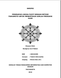 INTISARIrnBanyak faktor yang terlibat dalam perhitungan menjadirnkendala tersendiri dalam mengambil kebijakan menentukanrnjumlah barang yang akan diproduksi, untuk itu diperlukanrnsebuah metode untuk mengatasi hal tersebut. MetodernTsukamoto yang akan digunakan dalam menentukan jumlahrnproduksi kaos berdasarkan jumlah permintaan periode padarntertentu, jumlah persediaan pada periode tertentu, waktu yangrndibutuhkan pada periode tertentu dan jumlah bahan baku padarnperiode tertentu. Permintaan, persediaan, waktu, dan bahanrnadalah variabel-variabel yang akan direpresentasikan denganrnfungsi keanggotaan fuzzy.rnHasilnya sistem berjalan dengan baik hal ini dibuktikanrndari hasil perhitungan manual sama dengan hasil perhitunganrnsistem. Perbandingan antara data 10 bulan dari PT. Aseli DagadurnDjokdja dengan data hasil perhitungan sistem memiliki akurasirnsebesar 99,59%.rnLogika Fuzzy dengan Metode Tsukamoto mungkin bisarndijadikan alternatif dalam perhitungan penentuan jumlahrnproduksi berdasarkan faktor-faktor yang mempengaruhi jumlahrnproduksi.rnKata Kunci:Fuzzy, Produksi, Tsukamoto.rn